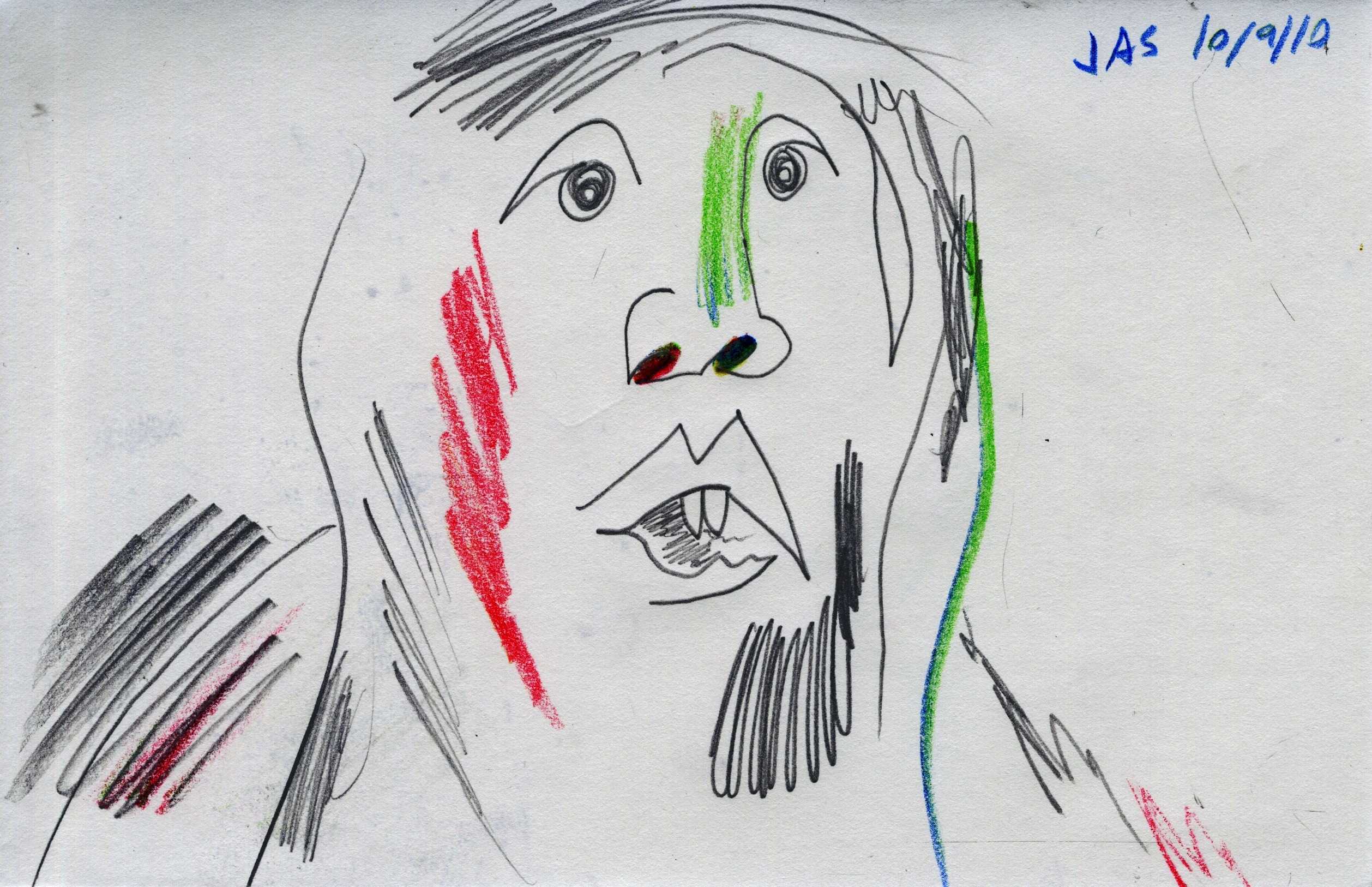 This drawing is about 8.5 inches wide by 5.5 inches tall. It was completed over 15 years ago on Saturday, October 9th, 2010 in Sarasota, FL. I added it to Jeffrey's Drawings almost 11 years ago. Download image (479 KB)