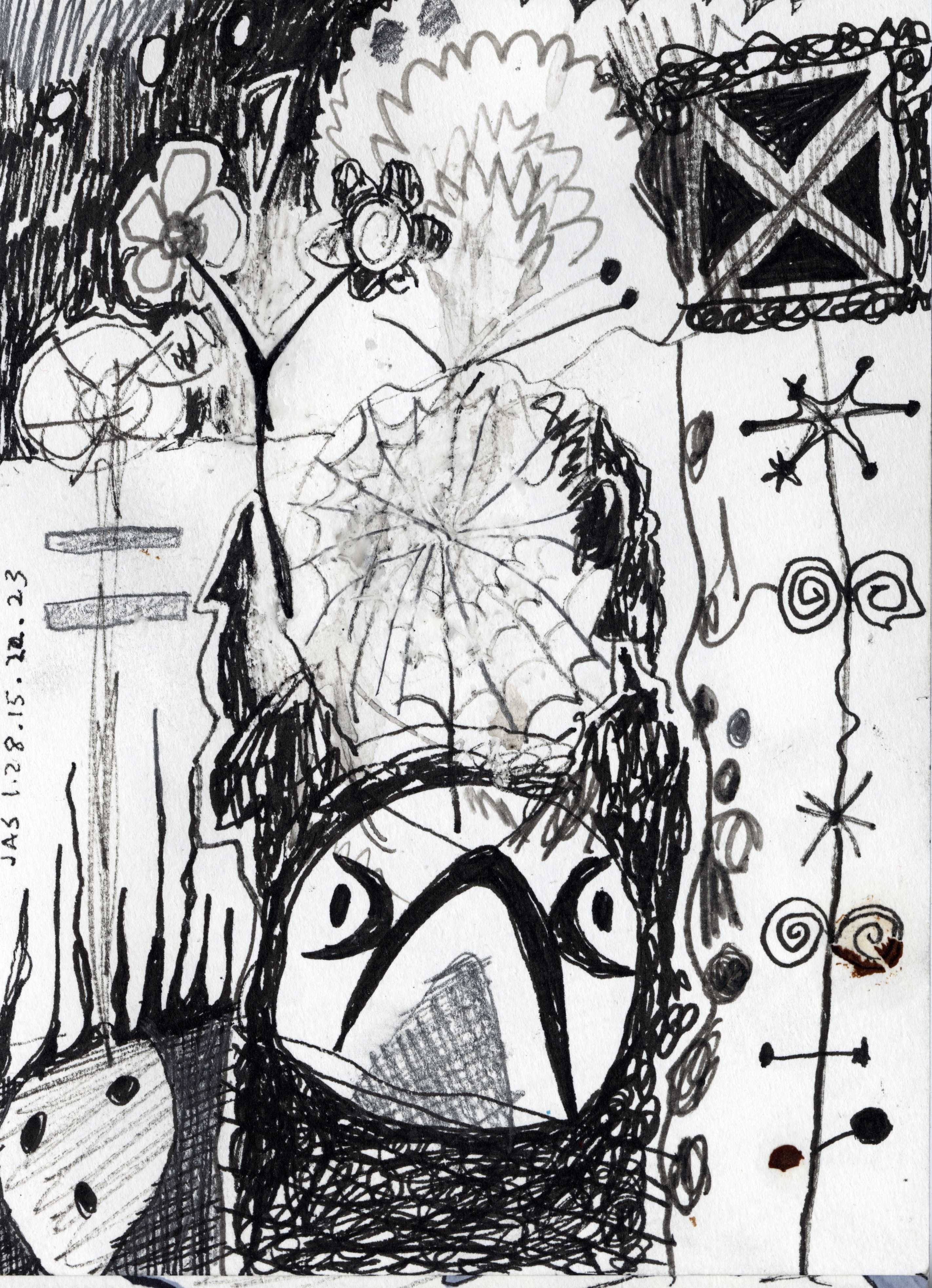 This drawing is about 4 inches wide by 6 inches tall. It was completed about 11 years ago on Wednesday, January 28th, 2015 at 10:23 PM in Brooklyn, NY. I added it to Jeffrey's Drawings almost 11 years ago. Download image (1.12 MB)