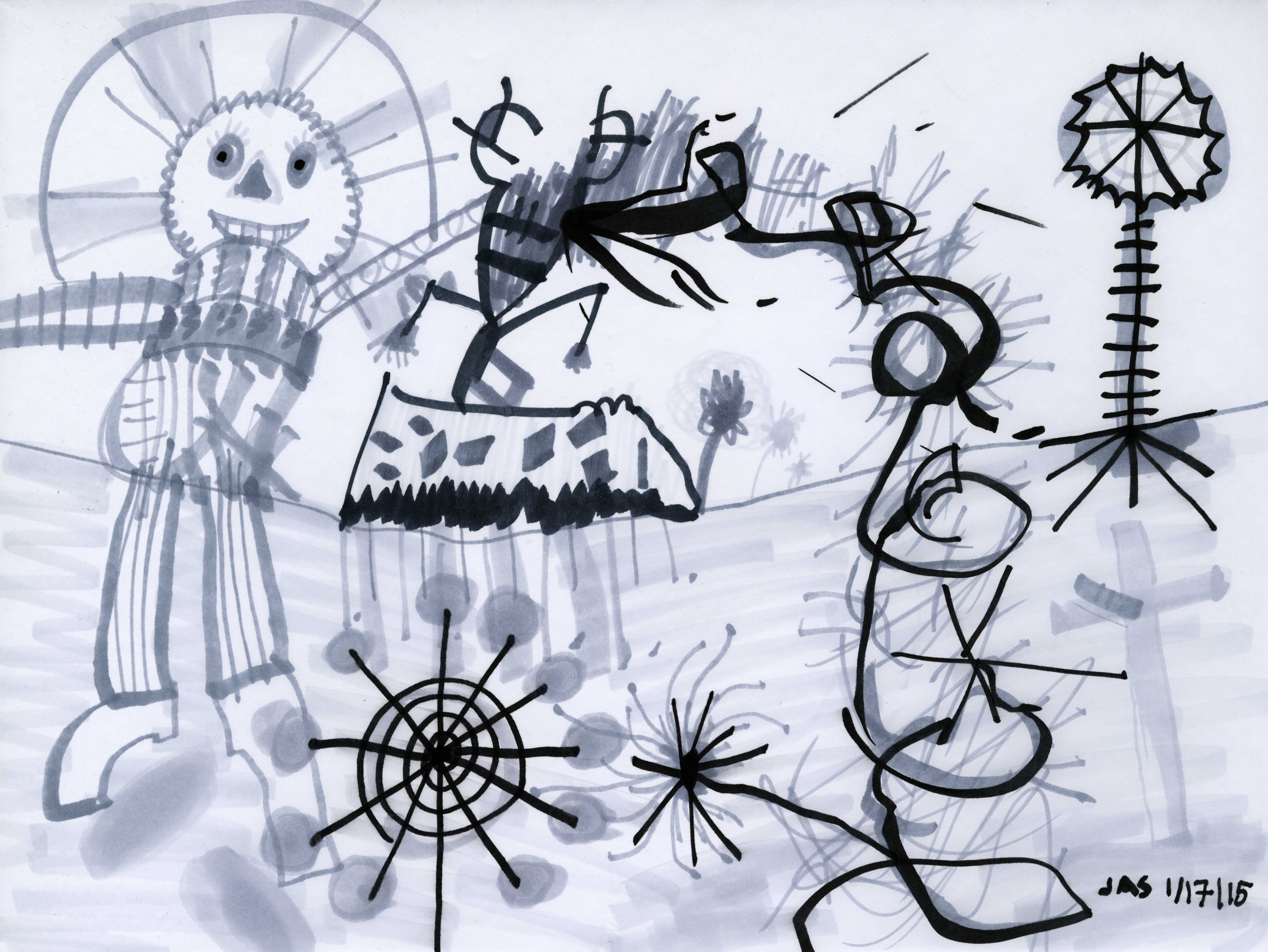 This drawing is about 12 inches wide by 9 inches tall. It was completed about 11 years ago on Saturday, January 17th, 2015 in Brooklyn, NY. I added it to Jeffrey's Drawings almost 11 years ago. Download image (1.56 MB)