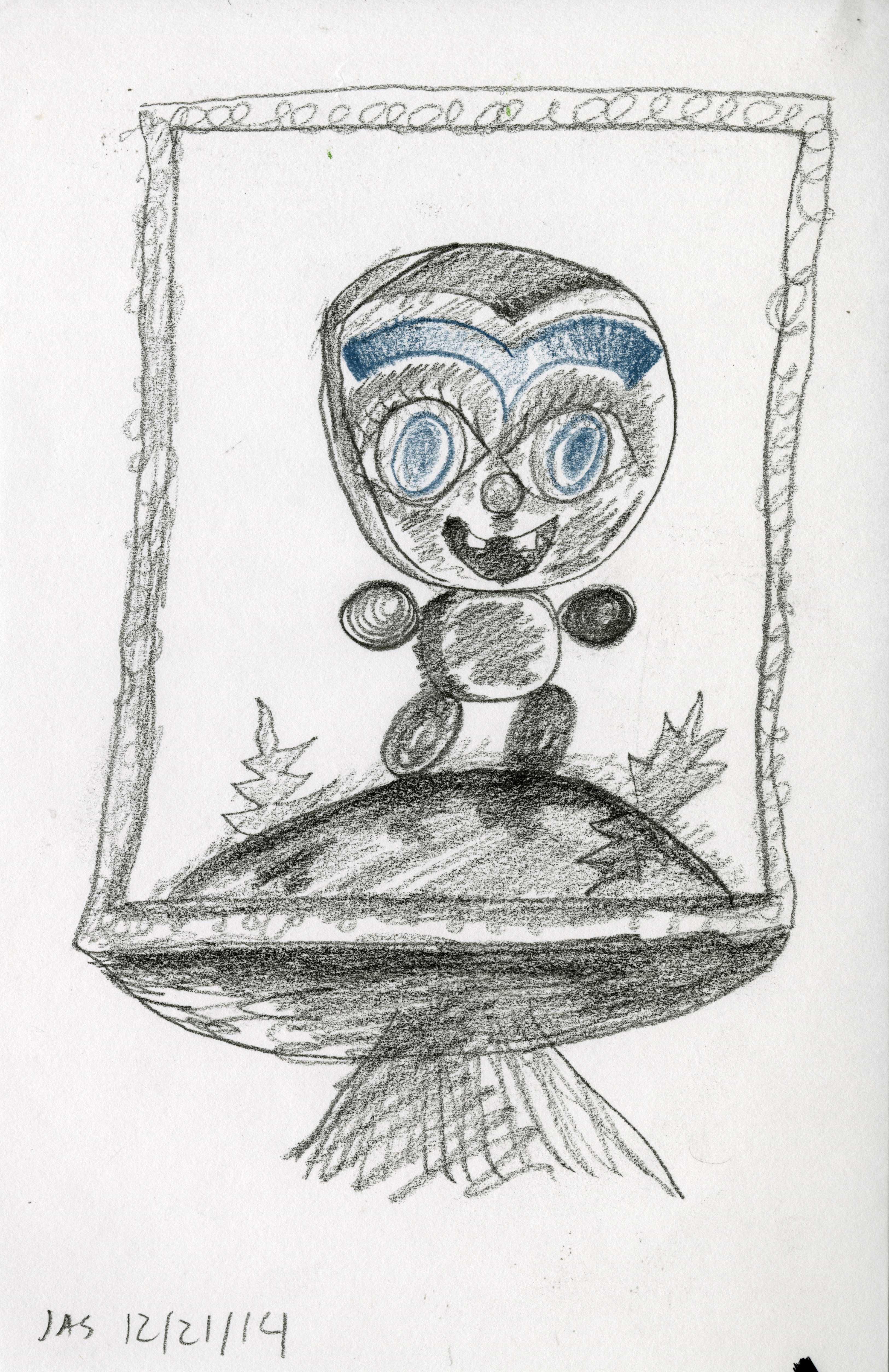 This drawing is about 5.5 inches wide by 8.5 inches tall. It was completed about 11 years ago on Sunday, December 21st, 2014 in Brooklyn, NY. I added it to Jeffrey's Drawings almost 11 years ago. Download image (1.61 MB)