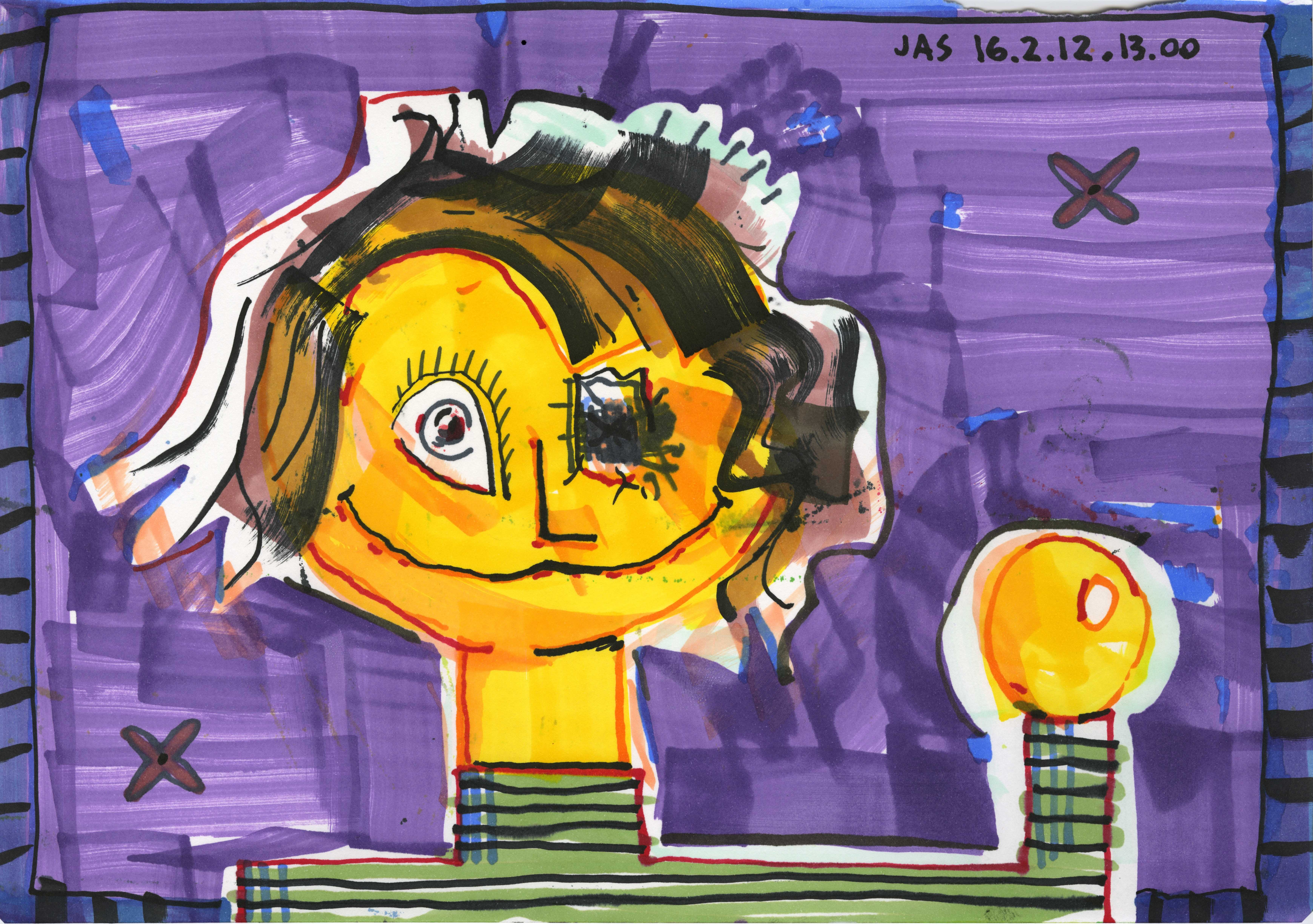 This drawing is about 12 inches wide by 9 inches tall. It was completed about 10 years ago on Friday, February 12th, 2016 at 01:00 PM in Brooklyn, NY. I added it to Jeffrey's Drawings almost 10 years ago. You can watch a video of this drawing being made. Download image (2.07 MB)