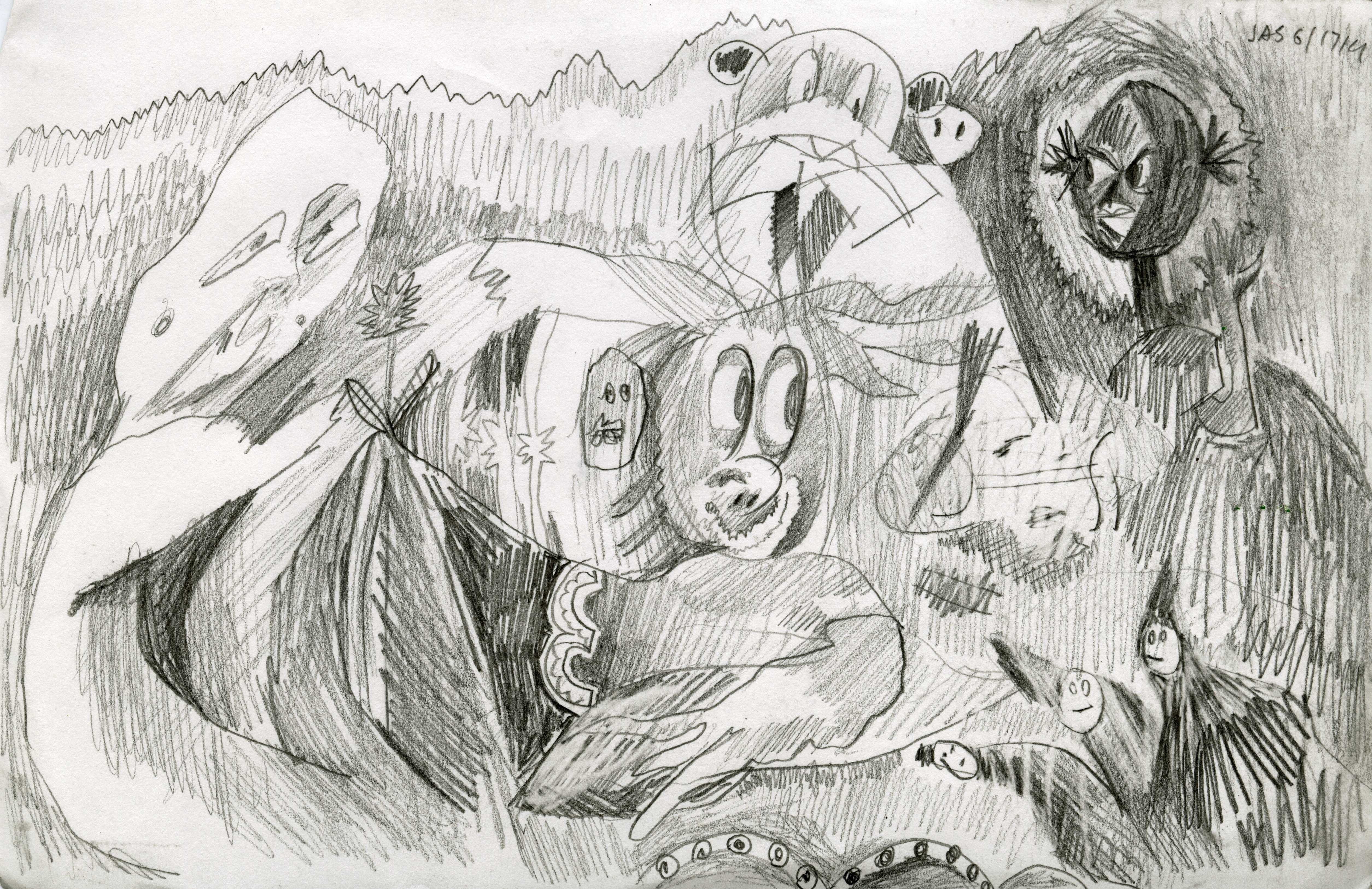 This drawing is about 8.5 inches wide by 5.5 inches tall. It was completed over 11 years ago on Tuesday, June 17th, 2014 in Brooklyn, NY. I added it to Jeffrey's Drawings almost 11 years ago. Download image (2.12 MB)