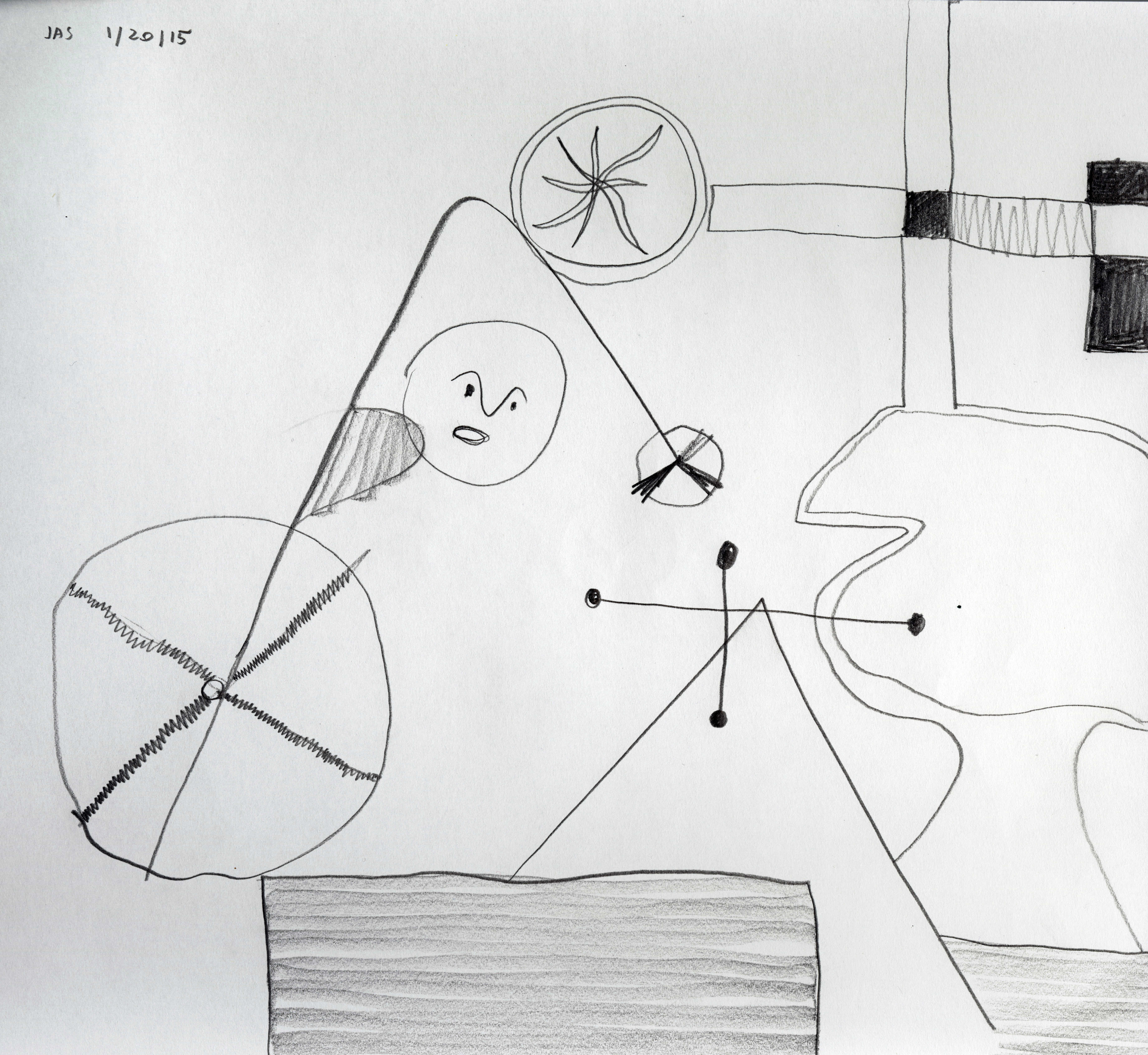 This drawing is about 9.5 inches wide by 8.5 inches tall. It was completed about 11 years ago on Tuesday, January 20th, 2015 in New York, NY. I added it to Jeffrey's Drawings almost 11 years ago. Download image (1.87 MB)