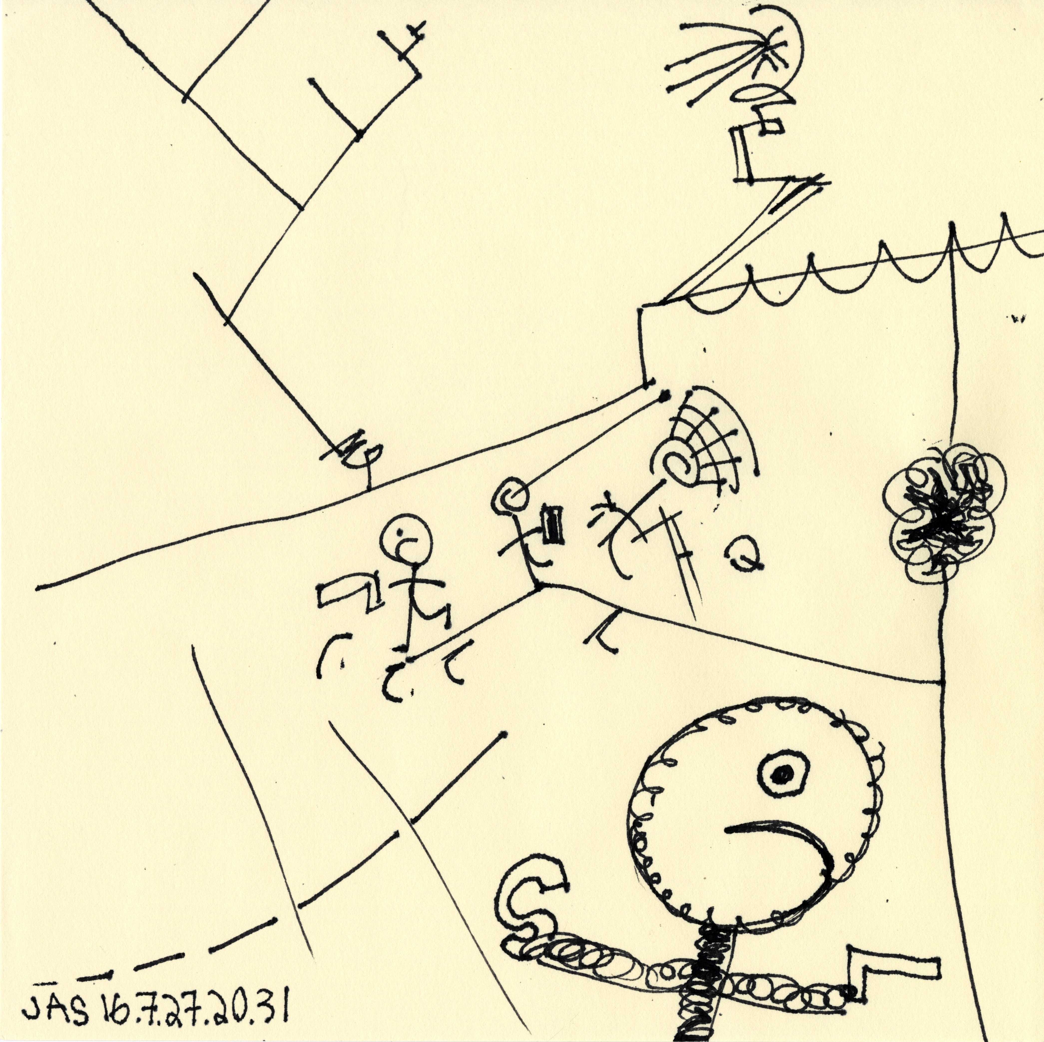 This drawing is about 7 inches wide by 7 inches tall. It was completed over 9 years ago on Wednesday, July 27th, 2016 at 08:31 PM in Los Angeles, CA. I added it to Jeffrey's Drawings over 9 years ago. Download image (777 KB)