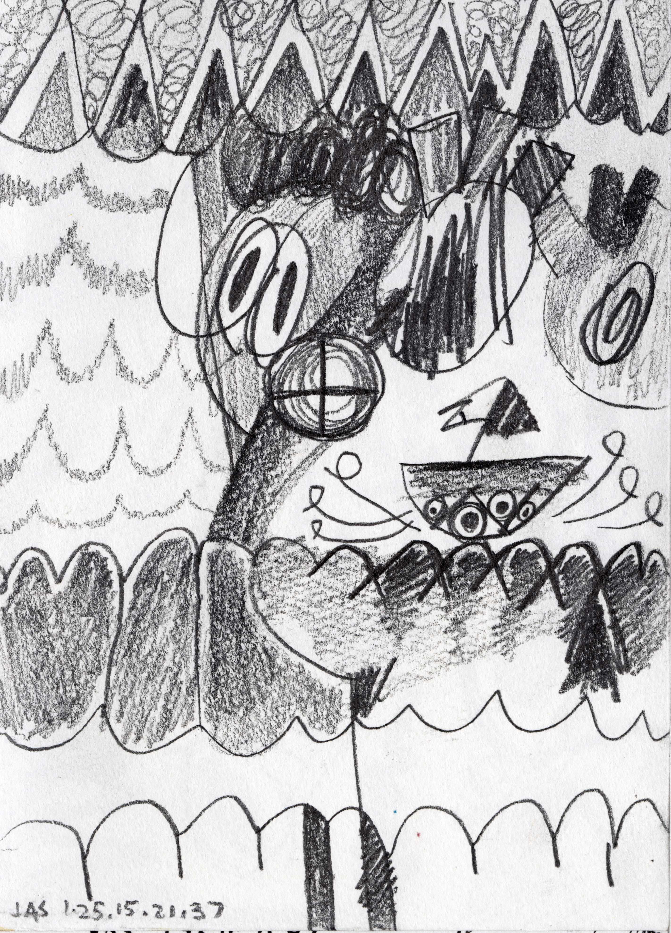 This drawing is about 4 inches wide by 6 inches tall. It was completed about 11 years ago on Sunday, January 25th, 2015 at 09:37 PM in Brooklyn, NY. I added it to Jeffrey's Drawings almost 11 years ago. Download image (1.42 MB)