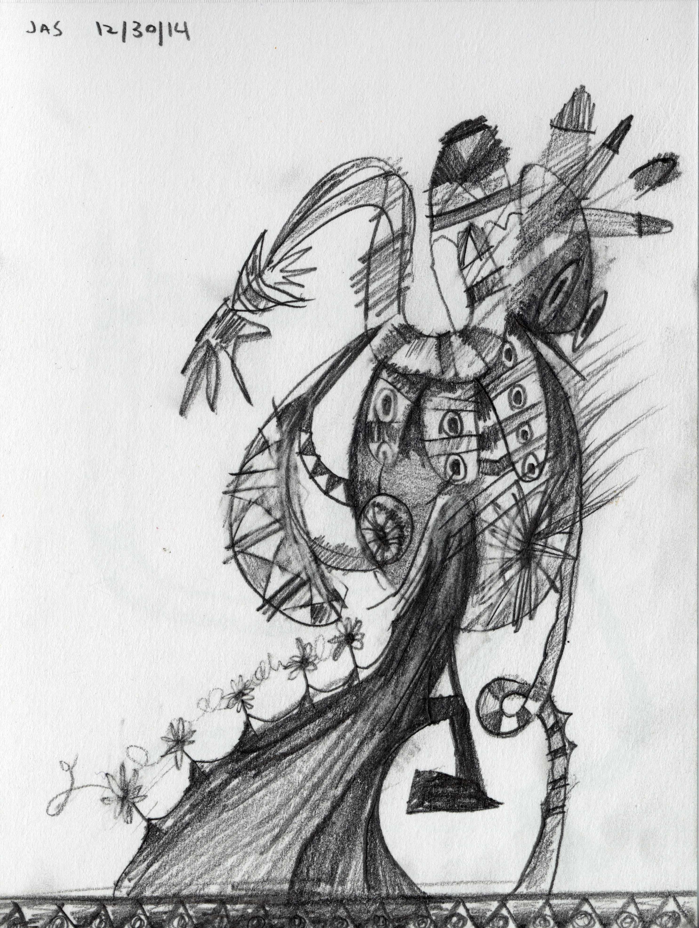 This drawing is about 5 inches wide by 7 inches tall. It was completed about 11 years ago on Tuesday, December 30th, 2014 at 05:00 PM in Alhambra, CA. I added it to Jeffrey's Drawings almost 11 years ago. Download image (1.42 MB)