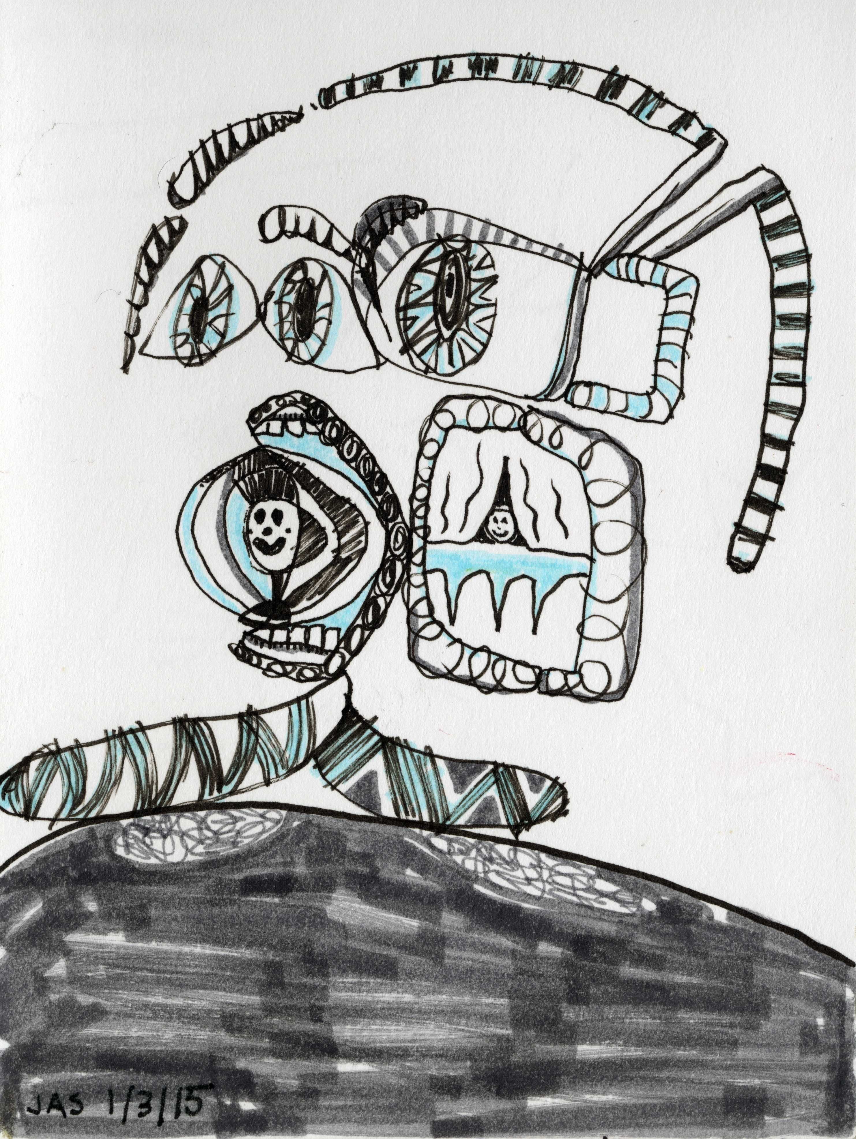 This drawing is about 5 inches wide by 7 inches tall. It was completed about 11 years ago on Saturday, January 3rd, 2015 at 05:00 PM in Alhambra, CA. I added it to Jeffrey's Drawings almost 11 years ago. Download image (1.24 MB)