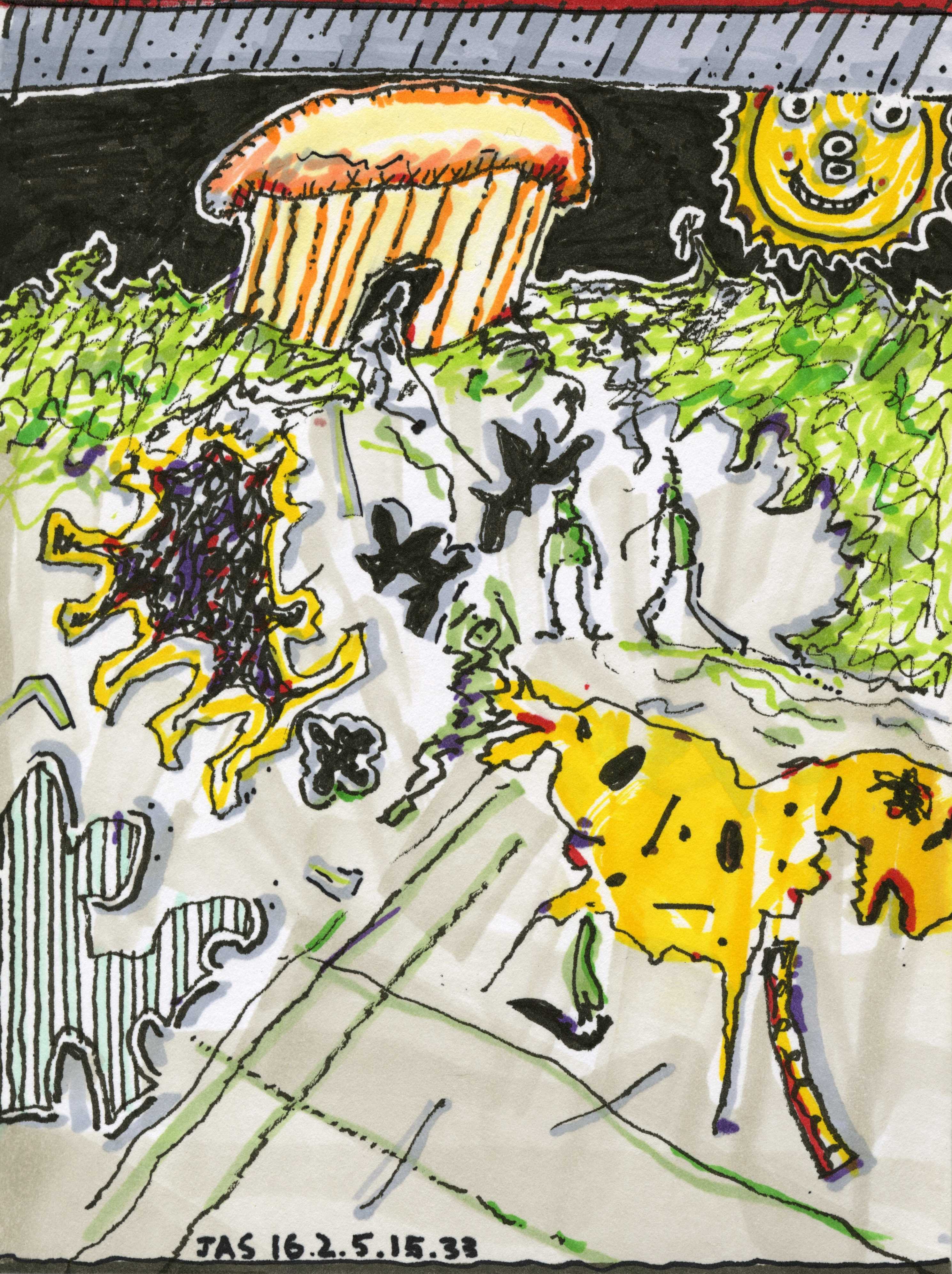 This drawing is about 5 inches wide by 7 inches tall. It was completed about 10 years ago on Friday, February 5th, 2016 at 03:33 PM in Brooklyn, NY. I added it to Jeffrey's Drawings almost 10 years ago. Download image (1.13 MB)